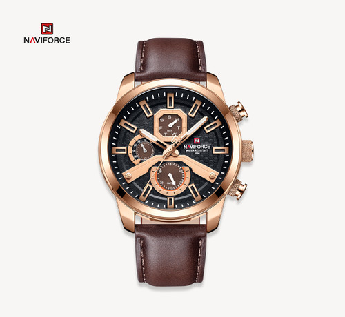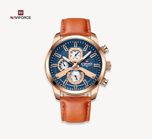 ساعت مچی مردانه نیوی فورس چرمی مدل NAVIFORCE 8053 - رزگلد قهوه ای