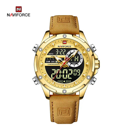 ساعت مچی مردانه نیوی فورس مدل naviforce 9211 - چرم طلایی قهوه ای