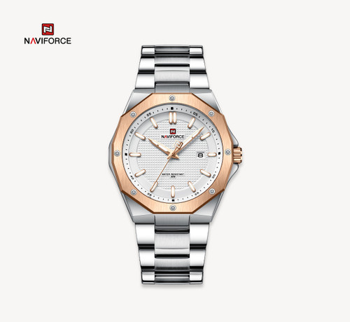 ساعت مچی مردانه استیل نیوی فورس مدل Naviforce 9200 - رزگلد سفید