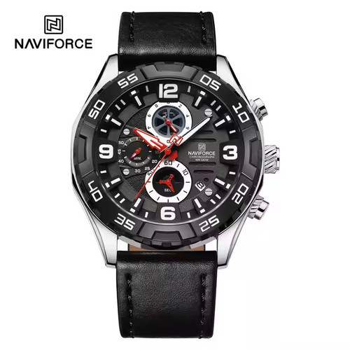 ساعت مچی مردانه نیوی فورس چرمی مدل NAVIFORCE 8053 - نقره ای مشکی