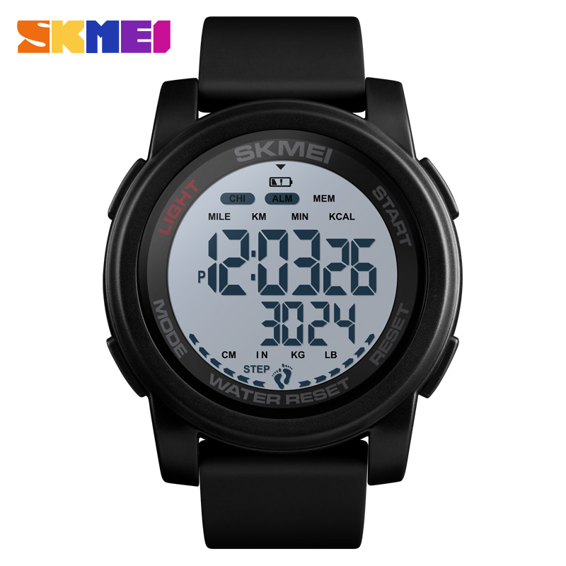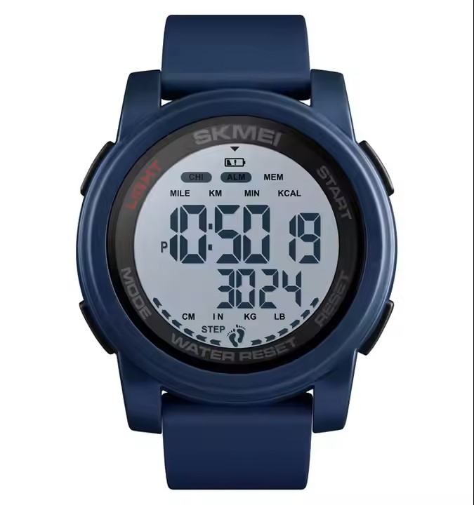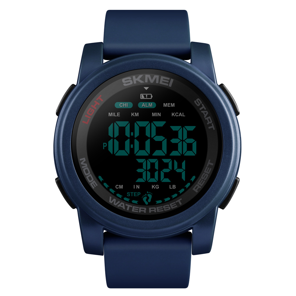 SKMEI 1469 قدم شمار مسافت سنج نمایش کالری سوزانده شده دو زمانه نمایشهای روزهای هفته آلارم قطر صفحه ۵۰ میلیمتر کورنومتر تقویم بند سیلیکونی ضد آب 50M