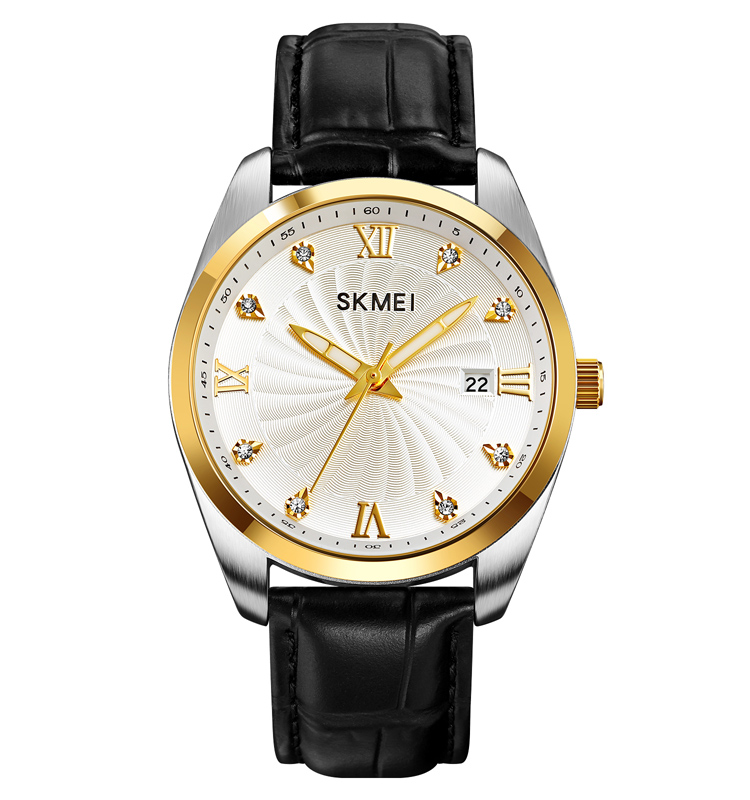 SKMEI 2061 دارای طراحی جذاب و دلنشین . جنس بدنه آلیاژ روی Zinc ضد حساسیت ضد آب 3ATM بند چرم درجه یک قفل استیل قطر صفحه ۴۰ میلیمتر رنگ ثابت تقویم همراه با جعبه اصلی SKMEI کارت گارانتی ۱ ساله