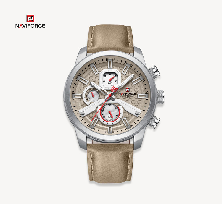 ساعت مچی مردانه نیوی فورس مدل naviforce 9211 - چرم نقره ای خاکستری