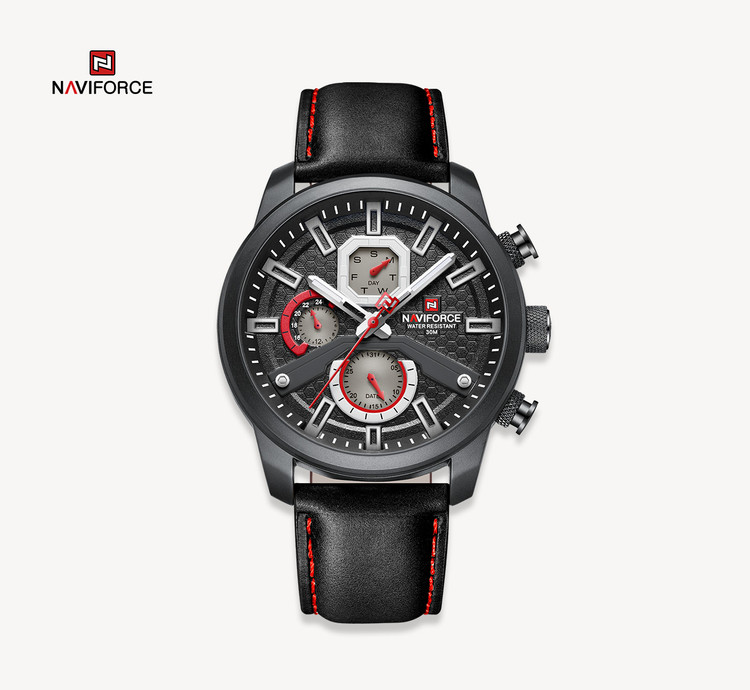 ساعت مچی مردانه نیوی فورس مدل naviforce 9211 - چرم مشکی مشکی