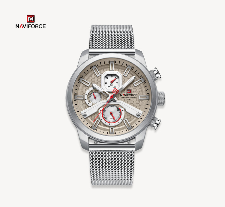 ساعت مچی مردانه نیوی فورس مدل naviforce 9211 - استیل نقره ای خاکستری