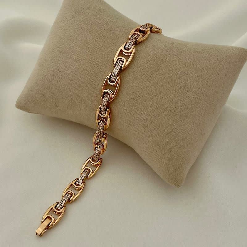 ویژگی های محصول برند:ژوپینگ رنگ :طلایی با آبکاری طلا 18 نگین ها:مخراجکاری شده طول:16.5 با 1.5 سانت تکه اضافه ضخامت:8 میل