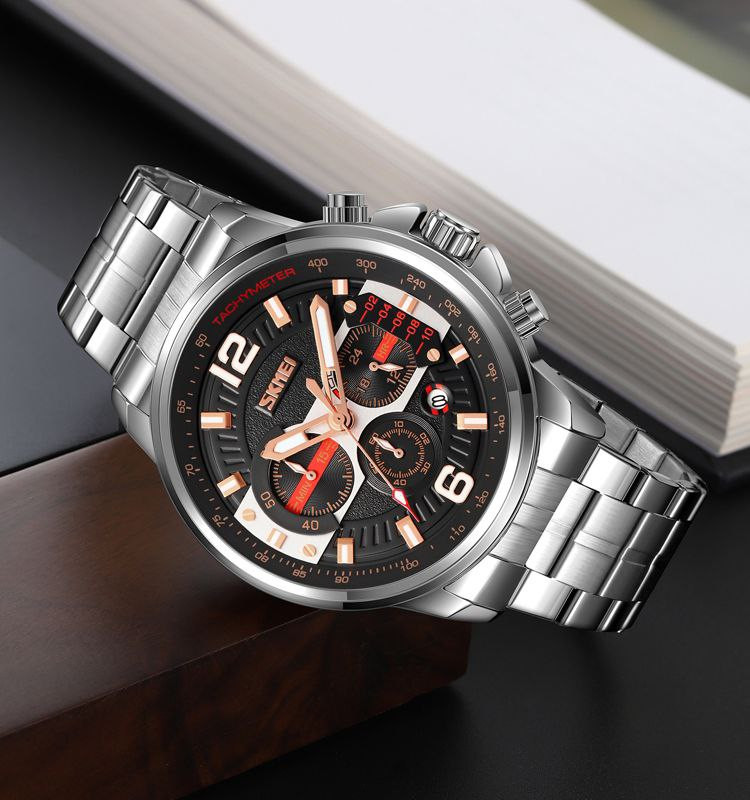 بند استیل: بند استیل با کیفیت بالا، مقاومت و دوام بالایی به ساعت می بخشد.