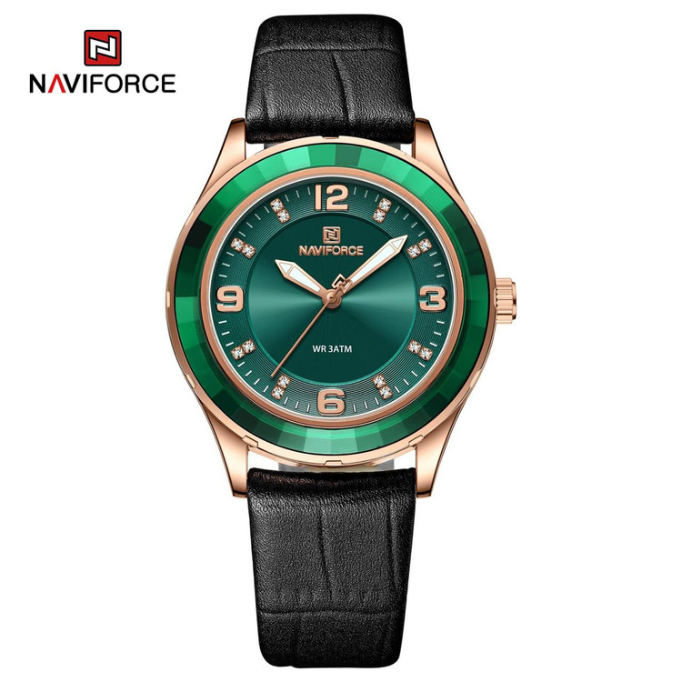 ساعت زنانه Naviforce 5040 با طراحی فوق العاده خود، ظاهری شیک و مدرن به شما می بخشد. این ساعت با بند چرم و صفحه گرد، مناسب برای استفاده روزمره و مجالس خاص است.