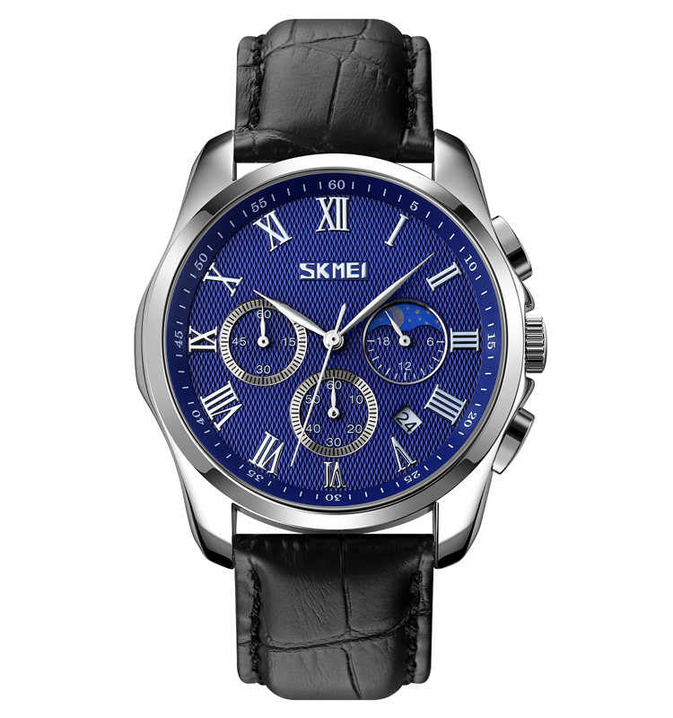 ساعت اسکمی 9260 با طراحی مدرن و مینیمالیستی خود، ظاهری شیک و جذاب دارد. این ساعت با بند چرمی قهوه ای یا مشکی و قاب نقره ای آبی، به هر استایلی مناسب است.