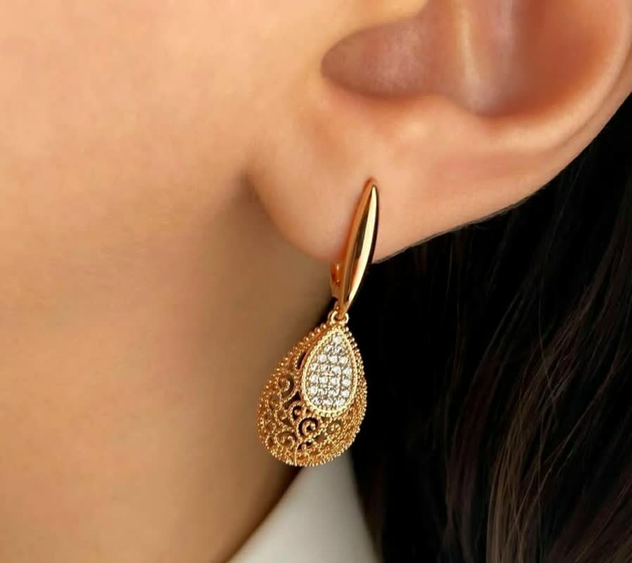 ویژگی های محصول برند: ژوپینگ رنگ : طلایی با آبکاری طلا 18 ارتفاع گوشواره: 3.7 سانت ارتفاع پلاک: 4 سانت زنجیر: ندارد