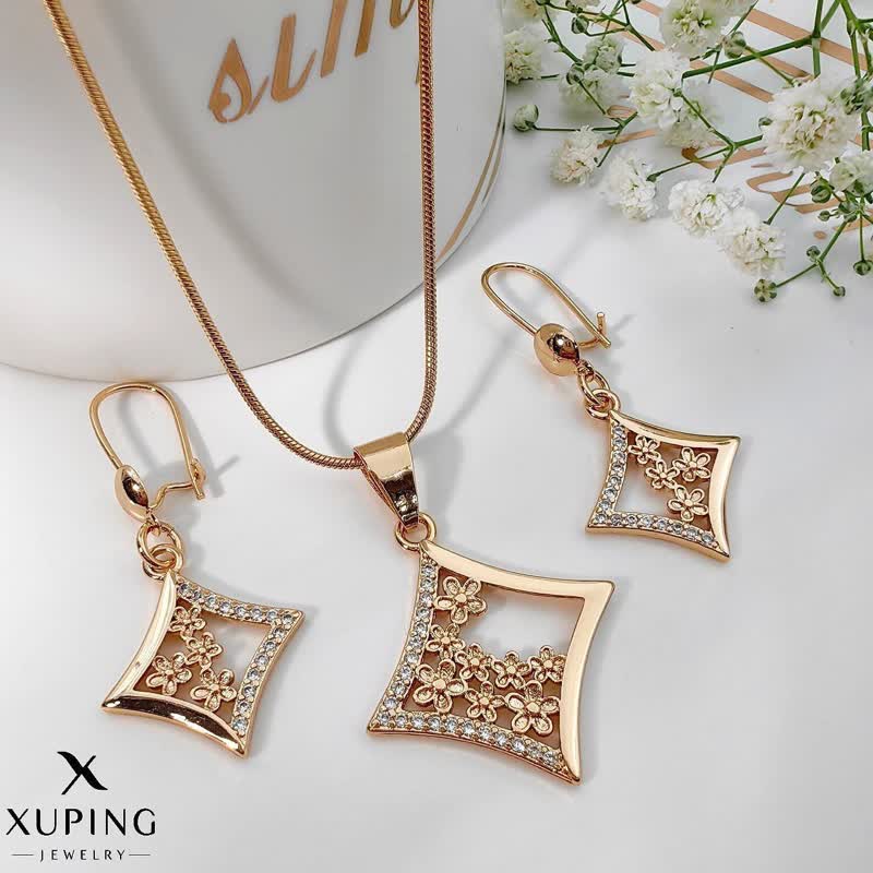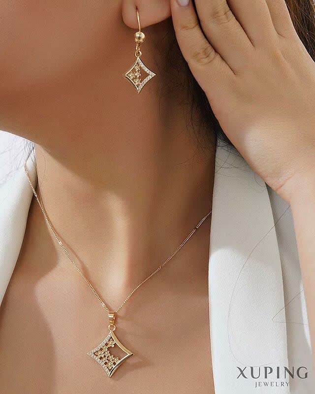 ویژگی های محصول برند: ژوپینگ رنگ : طلایی با آبکاری طلا 18 ارتفاع پلاک: 3.5 سانت ارتفاع گوشواره: 4.2 سانت زنجیر: ندارد