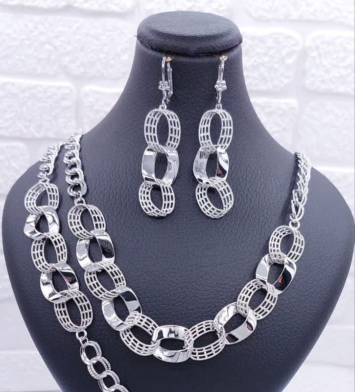 ویژگی های محصول برند: Fashion Jewelry رنگ : نقره ای ارتفاع گوشواره: 6 سانت طول دستبند: 17 به همراه 5 سانت زنجیر اضافه طول گردنبند: 44 به همراه 5 سانت زنجیر اضافه